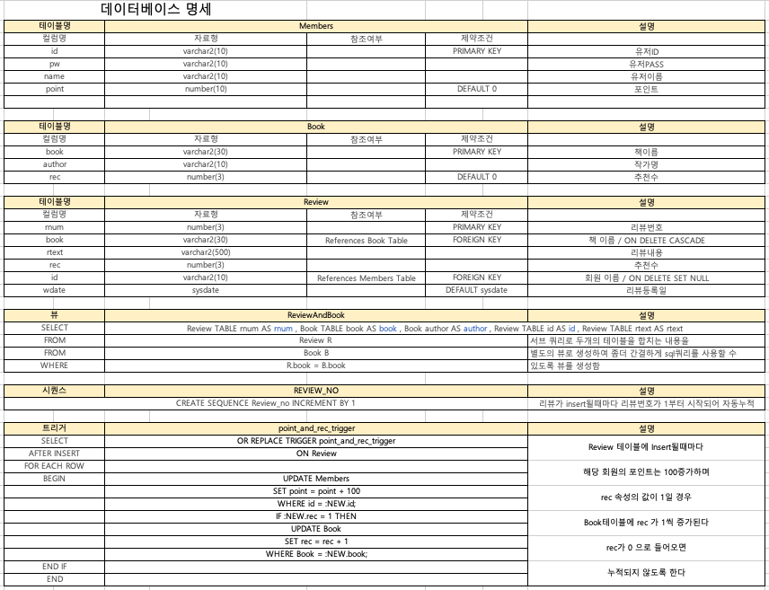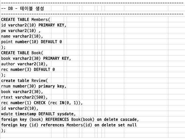 5. 오라클 테이블 외 기능 구현 쿼리 작성