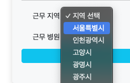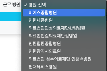 내가 하고자 했던 부분은 서버에서 병원 데이터를 가져오면 드롭박스로 해당 지역의 병원명이 보이고