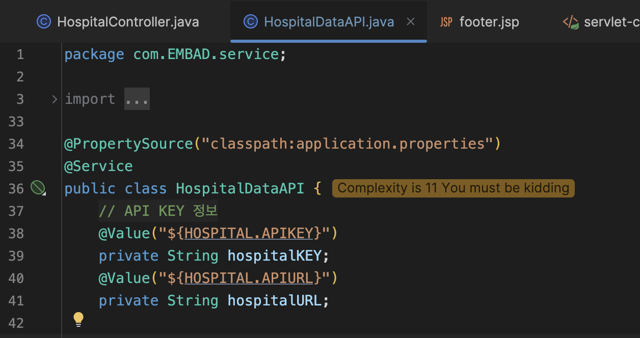 urlBuilder.append("?" + "serviceKey=" + hospitalKEY);