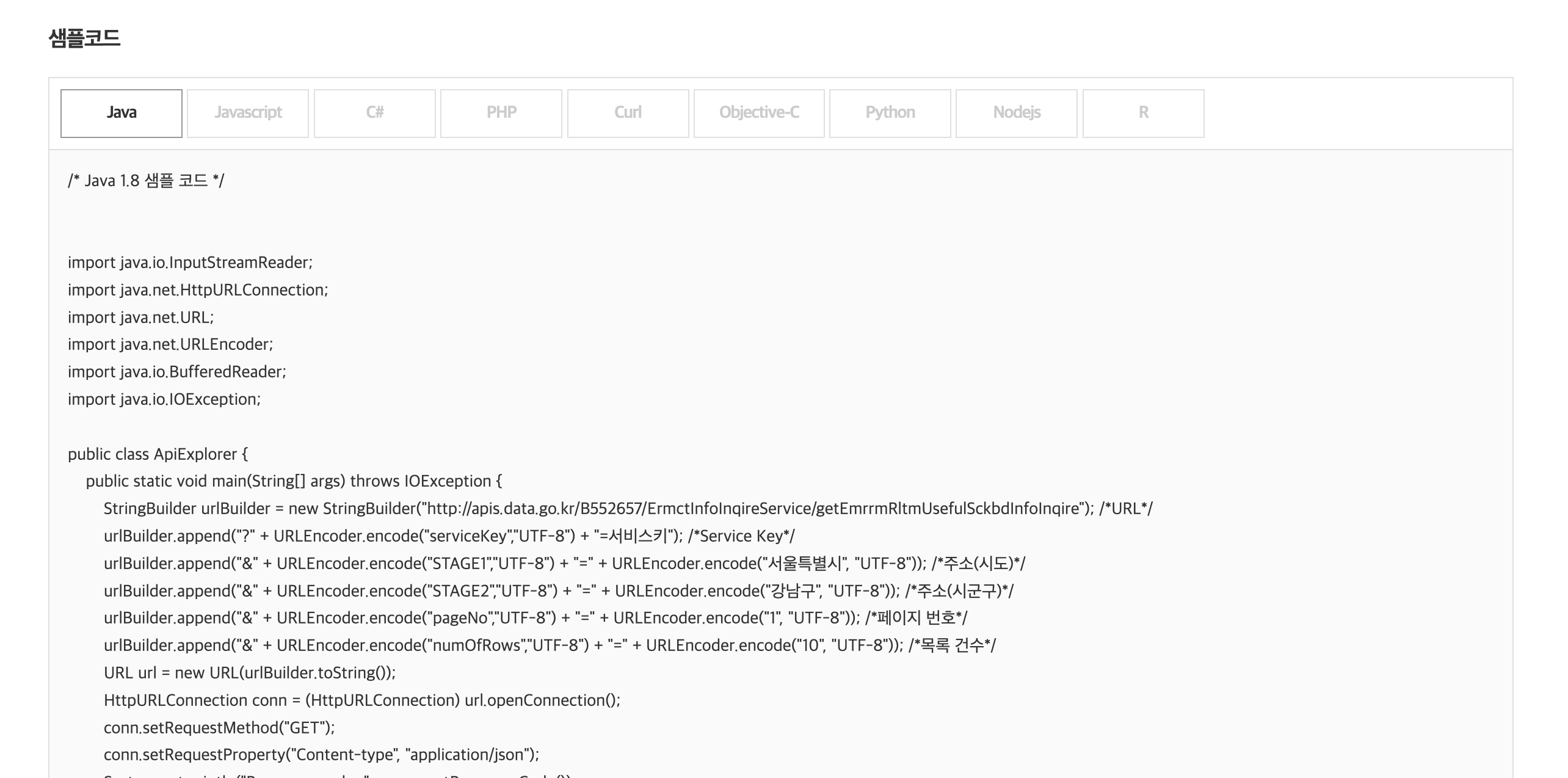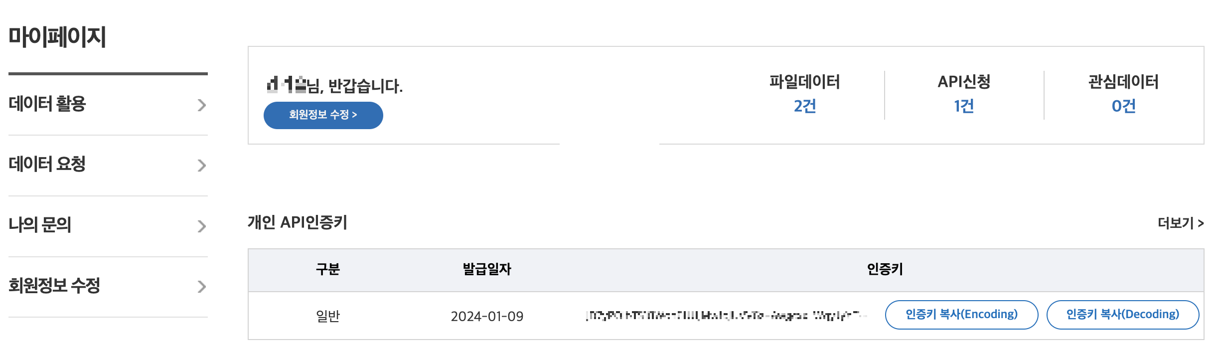 필요한 데이터를 찾다가 open API가 있는 것을 확인하고 바로 활용신청을 했다