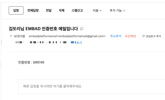 // 발송자 이메일(EMBAD이메일)