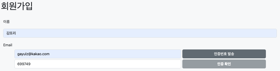 인증 확인 성공 시 저렇게 버튼이 비활성 화 된다