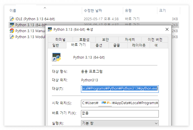 어떤 블로그엔 CMD 창에 'Python' 입력 시 시작경로가 뜬다고 하지만