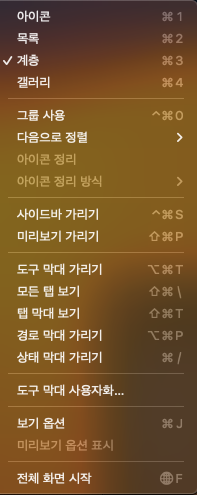 보기옵션 > 계층 / 도구 막대 보기 / 경로 막대 보기 상태 막대 보기