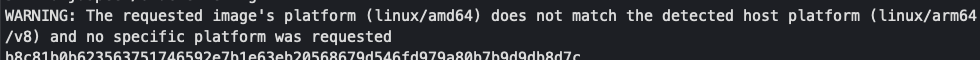 WARNING: The requested image's platform (linux/amd64) does not match the detected host platform (linux/arm64/v8) and no specific platform was requested