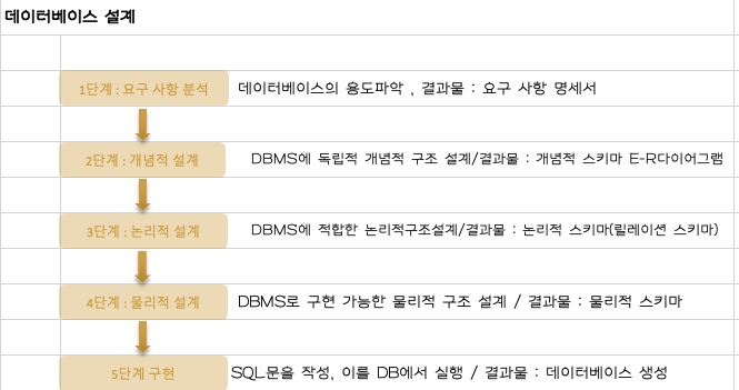 정의 : 사용자의 다양한 요구 사항을 고려하여 데이터 베이스를 생성하는 일련의 과정